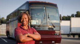 Tour Bus Driver infront of Bus-picad